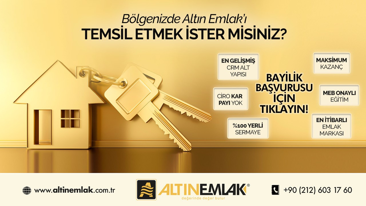 1998 yılında kurulan ALTIN EMLAK, Türkiye’nin en köklü altyapısına sahip olup uzmanlığı kamu kurumlarından onaylı en köklü emlak zinciridir.